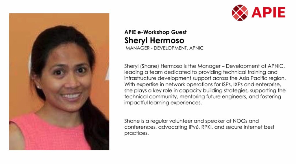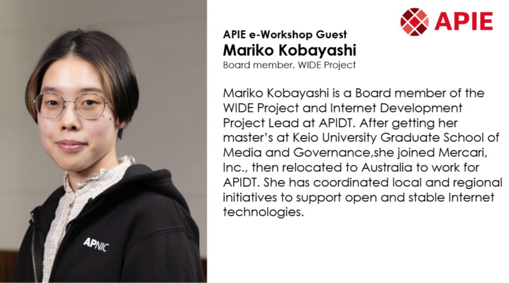 Throughout the series, participants engaged with guest lecturers from across the Internet ecosystem, including Mariko Kobayashi (APIDT, WIDE Project), Sheryl ‘Shane’ Hermoso (APNIC), and Shin Shirahata, who contributed sessions on Internet governance, the Internet ecosystem, and network infrastructure.