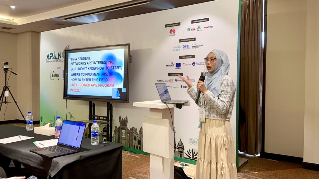 Learner perspectives were provided by Arnab Nath (BUET) and Syifani Adilllah Salsabila (Universitas Brawijaya), both APIE alumni. Syifani also participated in APAN 61 as a fellow, bringing a learner-centred perspective grounded in both academic study and regional community engagement. They reflected on how APIE enabled cross-border peer learning, engagement with communities and industry, and access to opportunities beyond formal academic programs.