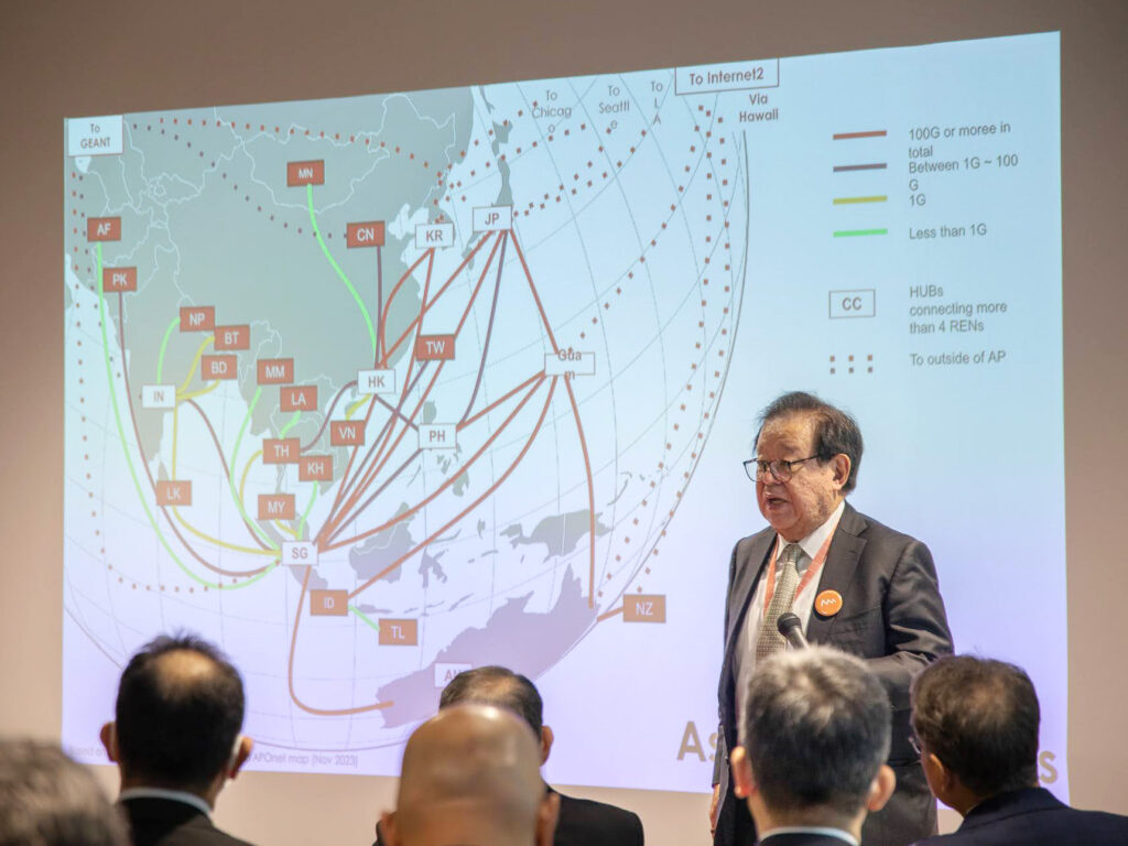 The second day of the meeting began with an opening ceremony featuring welcoming remarks by Professor Jun Murai (SOI Asia, Keio University), Shinji Shimojo (APAN59 Japan Organizing Committee Chair), and Rajnesh Singh (Chief Executive Officer, APNIC Foundation). Professor Murai shared updates on the collaboration with APAN, which led to the signing of a Memorandum of Understanding (MoU) between the two institutions during the APAN 59. Shimojo emphasized the importance of ongoing collaboration, while Singh celebrated the progress and achievements of SOI Asia.