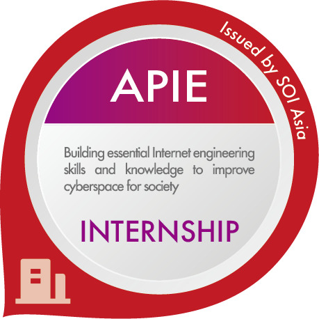 APIE (Asia Pacific Internet Engineering) Program aims to foster and support people in learning the necessary Internet engineering skills and how to improve cyberspace for society. This program helps young learners in the APAC acquire network engineering and operation skills. This allows them to improve their employability and meet the global demand for Internet engineers in industry and academia, including research and education networks (REN). The program consists of self-paced online learning courses and intense onsite camps with hands-on and community-building opportunities in face-to-face projects and internships.