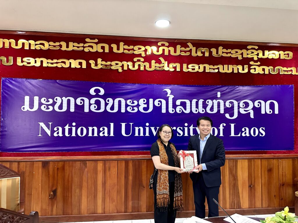 Later in the day, the delegation visited NUOL’s main campus to meet with Vice President Prof. Dr. Phouphet Kyophilavong, who recently took on a leadership role to strengthen NUOL’s IT strategy. With a Ph.D. from Osaka University and experience at Kobe University, Prof. Kyophilavong shared the Lao government’s current direction of promoting digital technologies as a driver for national economic development, transitioning from a traditional focus on agriculture and manufacturing.