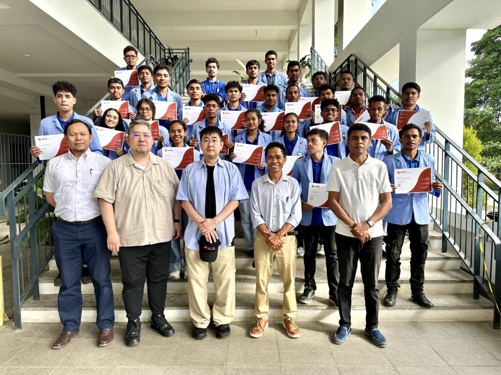 Despite network challenges on campus, the students showed motivation and curiosity, receiving their first APIE certificates and badges. The workshop concluded with group photos and final remarks. Follow-up activities are planned as the students begin the Core Course in August, aiming to join the next APIE Camp in early 2026.
